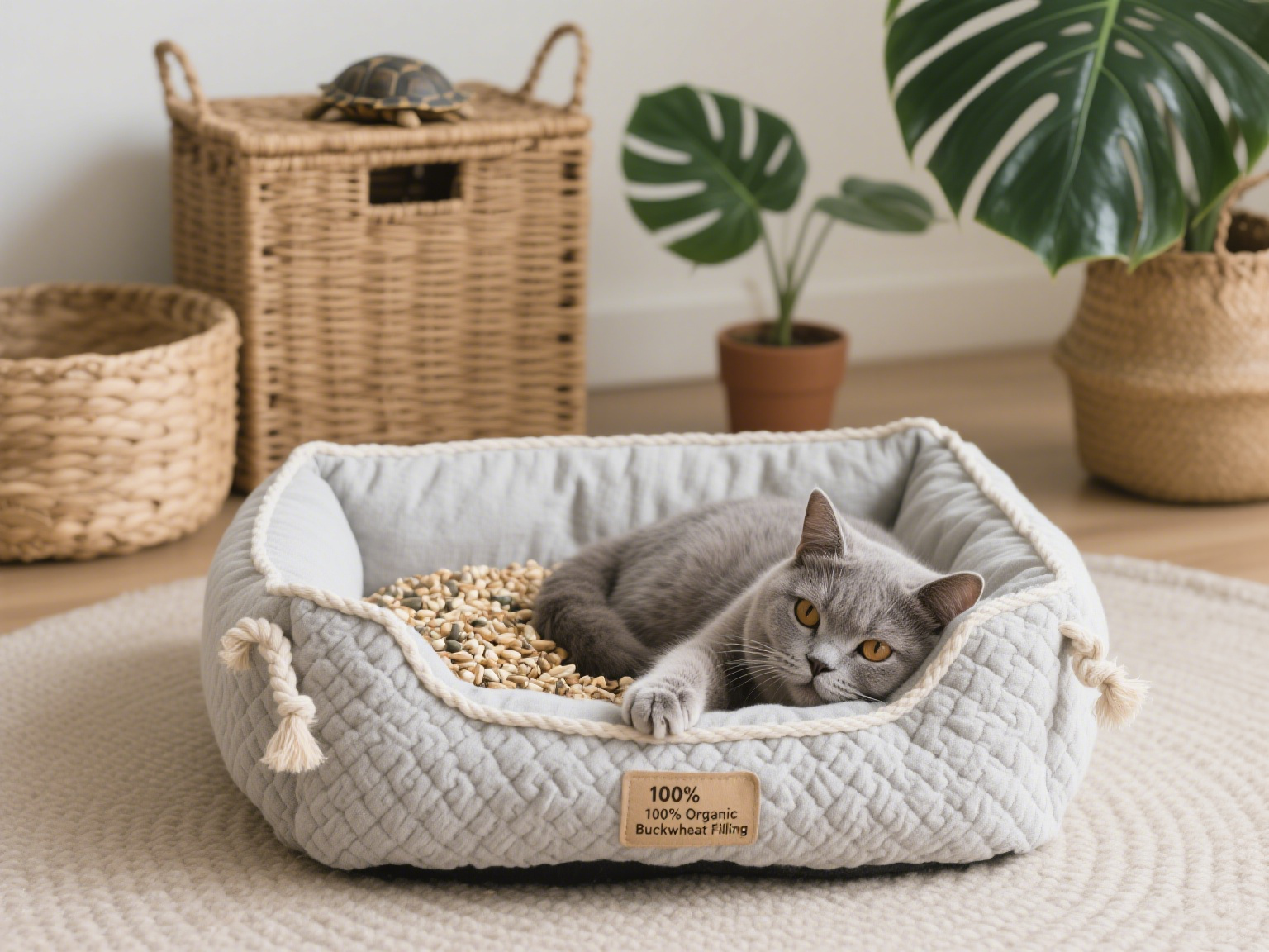 Cozy supportive bed: Breathable durable fabrics (memory foam/orthopedic), washable covers, multiple sizes—indoor/outdoor/senior pet use.
