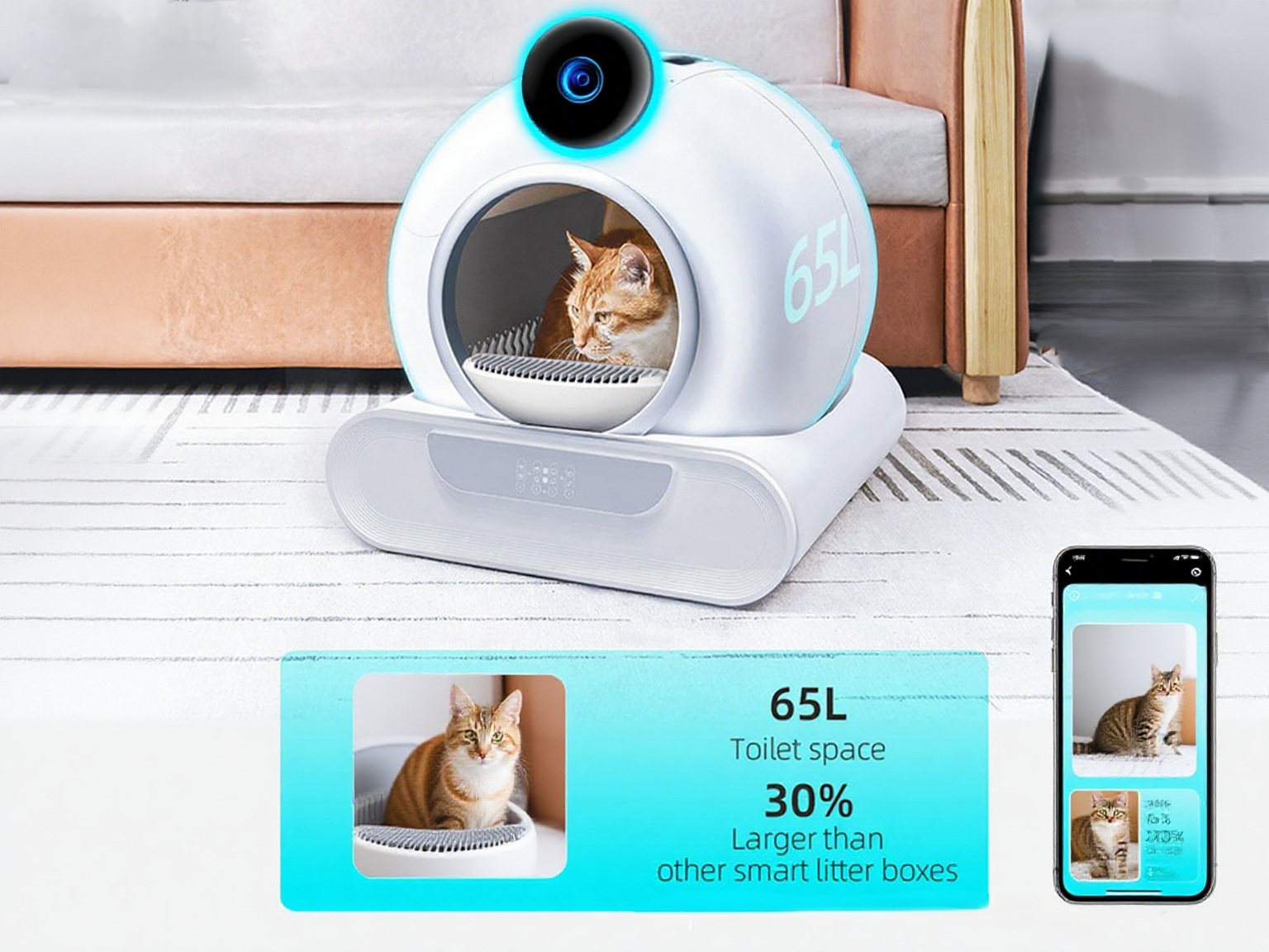 Automated cat litter solution: Self-cleans waste, reduces odor, cuts manual scooping. Includes app waste-level alerts and easy maintenance.